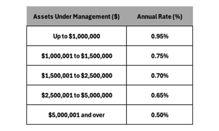 Western Level’s discretionary investment advisory fees are based on the following schedule: